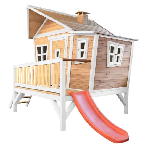 Mobilier De Jardin Enfant AXI Maisonnette EMMA Brun Blanc Avec Toboggan Citron Vert