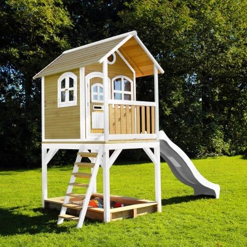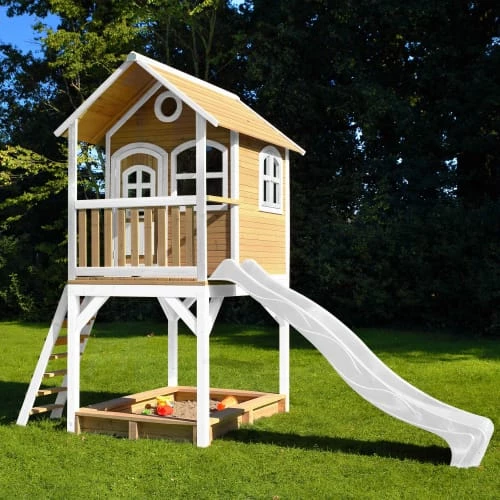 Axi Mobilier De Jardin Enfant Cabane Brun/blanc Avec Toboggan Blanc