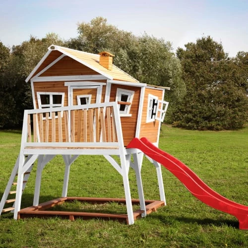 Axi Mobilier De Jardin Enfant Maisonnette Bleue Sur Pilotis Avec Toboggan Blanc