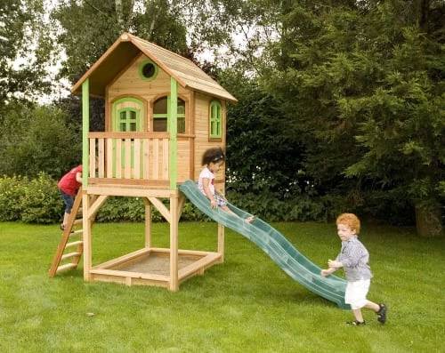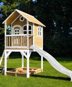 Axi Mobilier De Jardin Enfant Cabane Bois Sur Pilotis Avec Toboggan Blanc