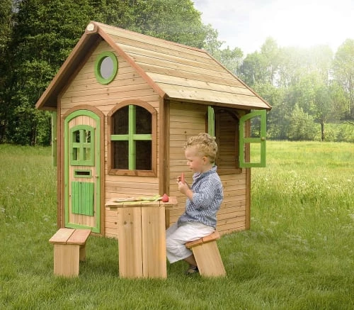 KidKraft Mobilier De Jardin Enfant Maisonnette Bleue En Bois Avec Toboggan Tubulaire