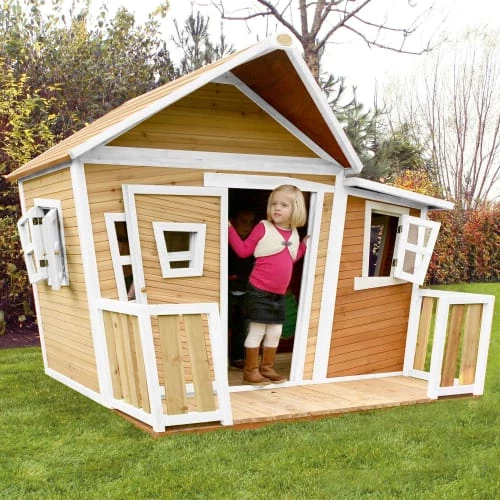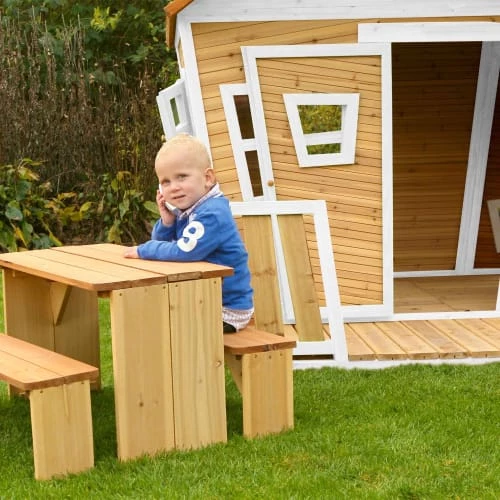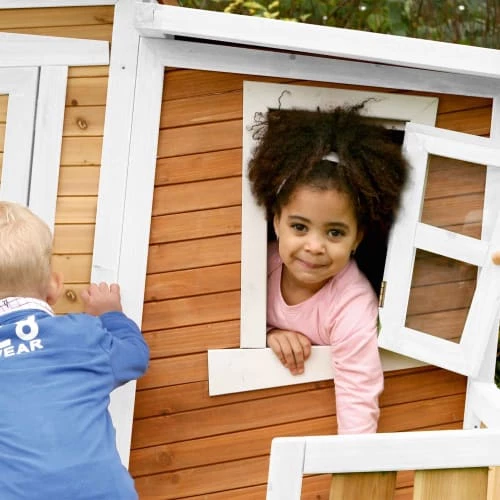 Axi Mobilier De Jardin Enfant Cabane Brun/blanc Avec Toboggan Blanc