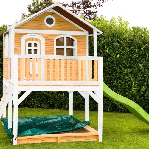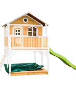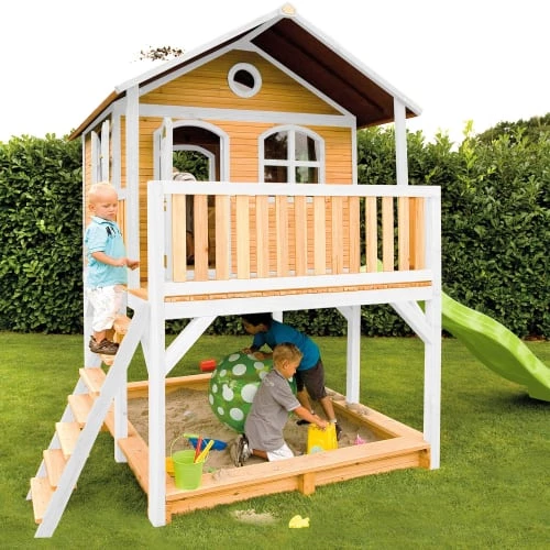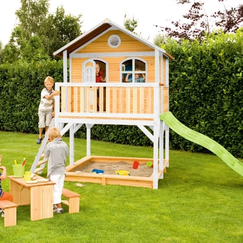 Mobilier De Jardin Enfant AXI Maisonnette EMMA Brun Blanc Avec Toboggan Citron Vert