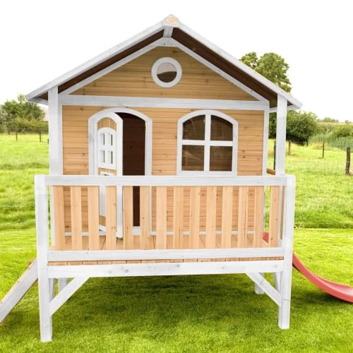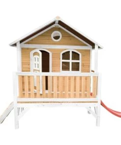Axi Mobilier De Jardin Enfant Cabane Brun/blanc Avec Toboggan Blanc