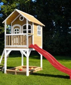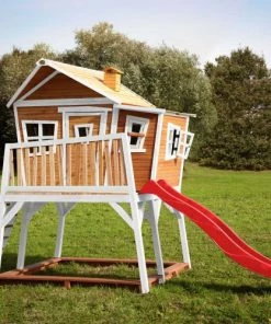 Axi Mobilier De Jardin Enfant Cabane Brun/blanc Avec Toboggan Rouge