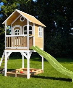 Axi Mobilier De Jardin Enfant Cabane De En Bois Brun/blanc Et Toboggan Vert Citron