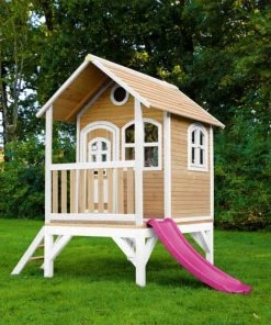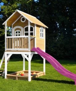 Axi Mobilier De Jardin Enfant Cabane Brun/blanc Avec Toboggan Violet