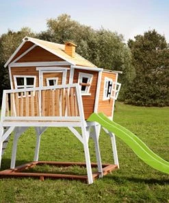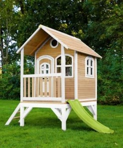 Axi Mobilier De Jardin Enfant Cabane Brun/blanc Avec Toboggan Vert