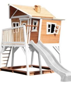 Axi Mobilier De Jardin Enfant Cabane Brun/blanc Avec Toboggan Blanc