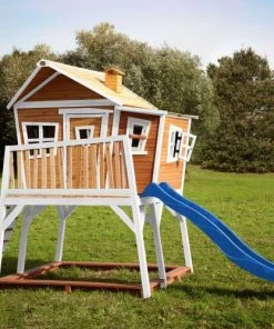 Axi Mobilier De Jardin Enfant Cabane Brun/blanc Avec Toboggan Bleu