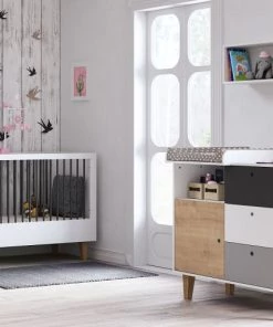 Wadiga Commodes Enfant Meuble De Rangement Chambre Enfant Blanche Avec 6 Paniers Rose Et Gris