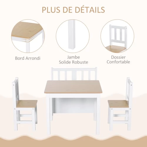 – Ensemble table, 2 chaises et banc coffre 2 en 1 pour enfants de plus de 3 ans