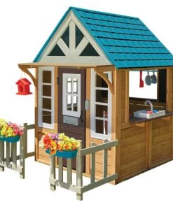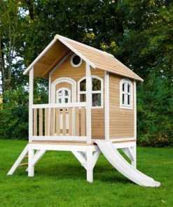 Axi Mobilier De Jardin Enfant Cabane Brun/blanc Avec Toboggan Blanc
