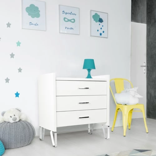 Sauthon Commodes Enfant Commode 3 Tiroirs Couleur Bois Et Blanc