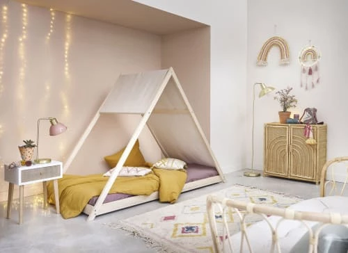 Plateau et étagères : panneaux de fibres de moyenne densité et revêtement en rotin tressé