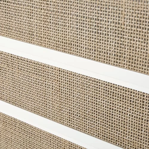 Façades des 3 tiroirs : structure en panneaux de fibres de moyenne densité, et rotin tressé