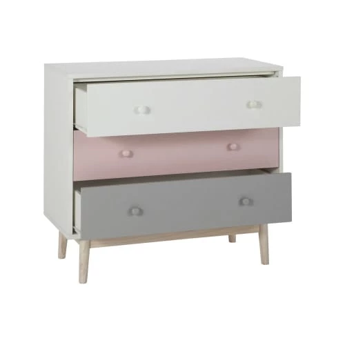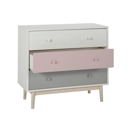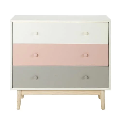 De design sobre, cette commode vintage3 tiroirsblanche, rose et grise BLUSHapportera douceur et fraîcheur à la déco de votre enfant. Pratique avec ses 3 grands tiroirs, cette commodepossède un beau volume de rangement. Le détail déco : les tiroirs colorés qui contrastent joliment avec le blanc. Notre conseil : décorez son plateau avec des objets déco coordonnés. Et pourquoi pas une lampe rose ?