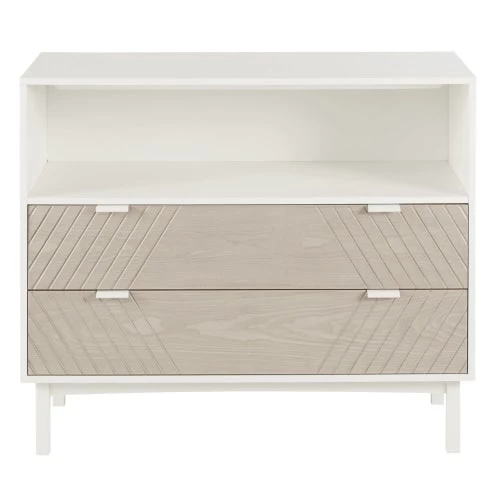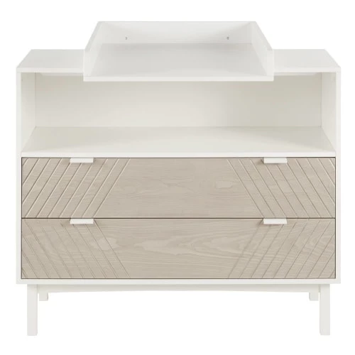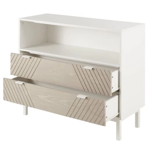 Cette magnifique commode compatible plan à langer 2 tiroirs sculptés beige et blanche BARSANA sera parfaite dans la chambre de bébé ! Elle servira à la fois d’espace de rangement pour toutes les affaires dont vous avez besoin pour changer bébé, de meuble à langer en y déposant un joli matelas à langer mais également d’élément de décoration grâce à son design moderne. Cette commode est idéale !