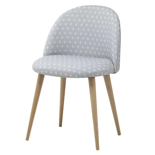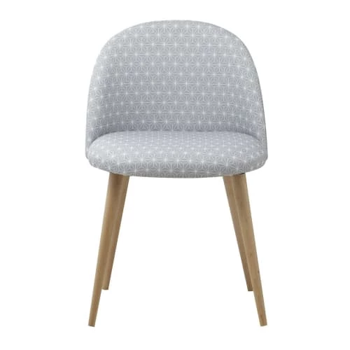 Animée par un motif graphique et moderne, cette chaise vintage grise motifs étoiles MAURICETTE trouvera parfaitement sa place dans une ambiance scandinave. Confortable et élégante avec son piètement fuselé, cette chaise vintage complètera votre coin bureau ou votre chambre près d’une coiffeuse. Le détail déco : le motif étoilé qui modernise son esprit rétro. Vous aimerez : cette chaise existe dans plusieurs coloris, n’hésitez pas à les mixer ensemble pour créer un intérieur unique !