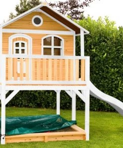 Axi Mobilier De Jardin Enfant Maisonnette En Bois Brun/ Blanc Sur Pilotis Avec Toboggan Blanc