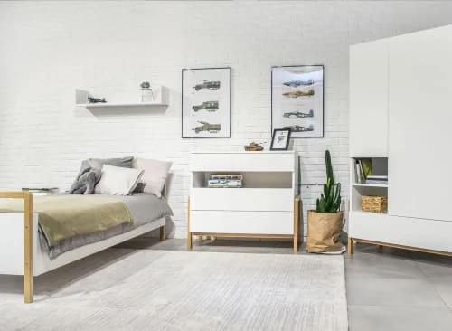 Pourquoi ne pas uniformiser la décoration de la chambre pour votre enfant, en associant cette commode avec un lit bébé 60×120 ADAM, ou encore une armoire 2 portes 1 tiroir si la taille de la chambre le permet ?