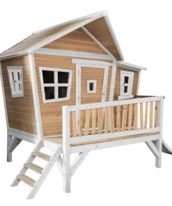 Axi Mobilier De Jardin Enfant Cabane Asymétrique En Bois Sur Pilotis Avec Toboggan 118 Cm Blanc