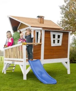 Axi Mobilier De Jardin Enfant Cabane Asymétrique En Bois Sur Pilotis Avec Toboggan 118 Cm Bleu