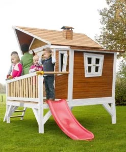 Axi Mobilier De Jardin Enfant Cabane Asymétrique En Bois Sur Pilotis Avec Toboggan 118 Cm Rouge