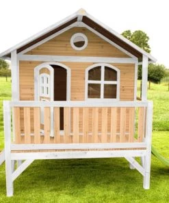 Axi Mobilier De Jardin Enfant Maisonnette Sur Pilotis En Bois Brun/blanc Avec Toboggan Vert