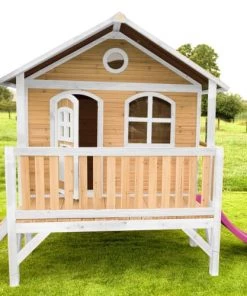 Axi Mobilier De Jardin Enfant Maisonnette Sur Pilotis En Bois Brun/blanc Avec Toboggan Violet