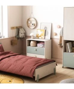 Calicosy Commodes Enfant Commode Enfant 2 Tiroirs 1 Niche – Vert De Gris Et Bois Clair
