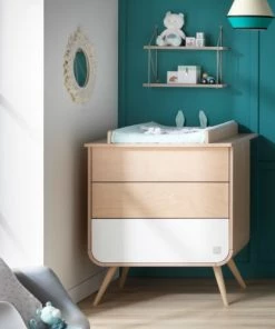 Sauthon Original Commodes Enfant Commode 3 Tiroirs Pieds Bois 97x87x48cm En Bois Beige