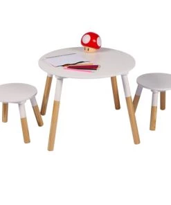 Toilinux Tables Et Chaises Enfant Ensemble Table Et 2 Tabourets Pour Enfants Bois Et Blanc