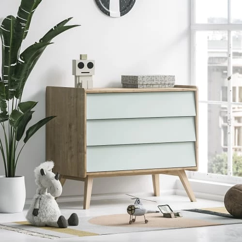 Sauthon Commodes Enfant Commode 3 Tiroirs Couleur Bois Et Blanc