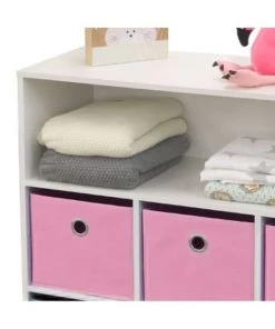 Wadiga Commodes Enfant Meuble De Rangement Chambre Enfant Blanche Avec 6 Paniers Rose Et Gris