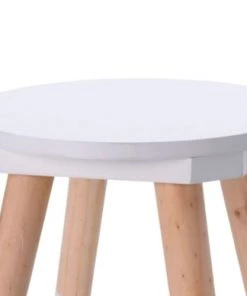 Wadiga Fauteuils Et Poufs Enfant Tabouret Enfant Blanc Et Bois – 24x24x26cm