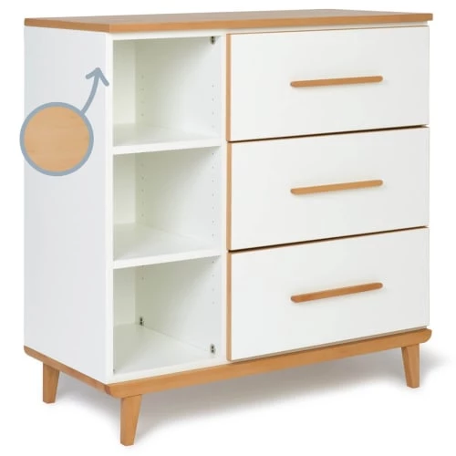 Grâce à ses 3 niches qui peuvent accueillir des cubes de rangement en bois massif (vendus séparément) et ses 3 tiroirs, elle est très fonctionnelle ! De plus, le système de fermeture “Soft Close”, doux et silencieux, assure un maximum de confort et de sécurité.