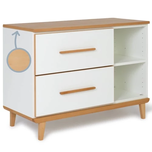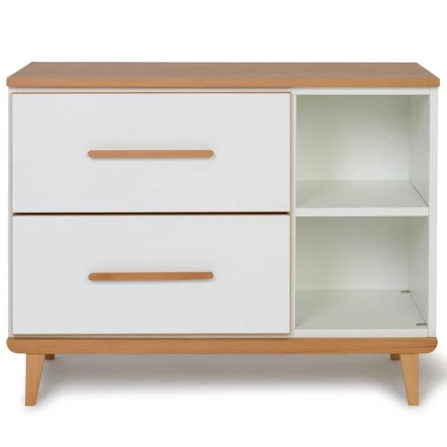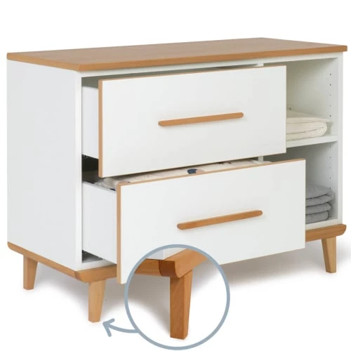 Grâce à ses 2 niches qui peuvent accueillir des cubes de rangement en bois massif (vendus séparément) et ses 2 tiroirs, elle est très fonctionnelle ! De plus, le système de fermeture “Soft Close”, doux et silencieux, assure un maximum de confort et de sécurité.